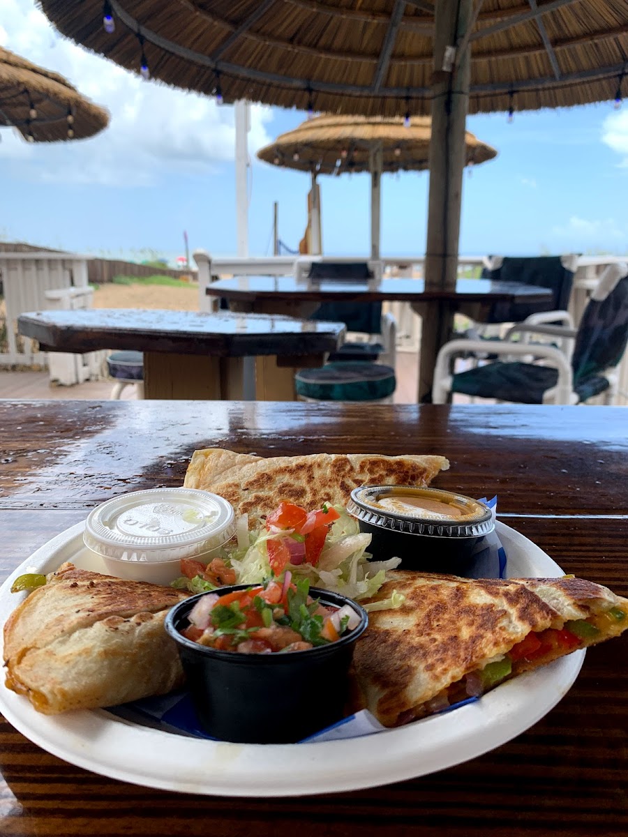 Great place with a beautiful view. Was able to do work on the beach— outlets available outside by the tables. Food was great. I HIGHLY recommend the loaded beef nachos!! Would come back just for that! They also had a taco Tuesday special that we took advantage of.